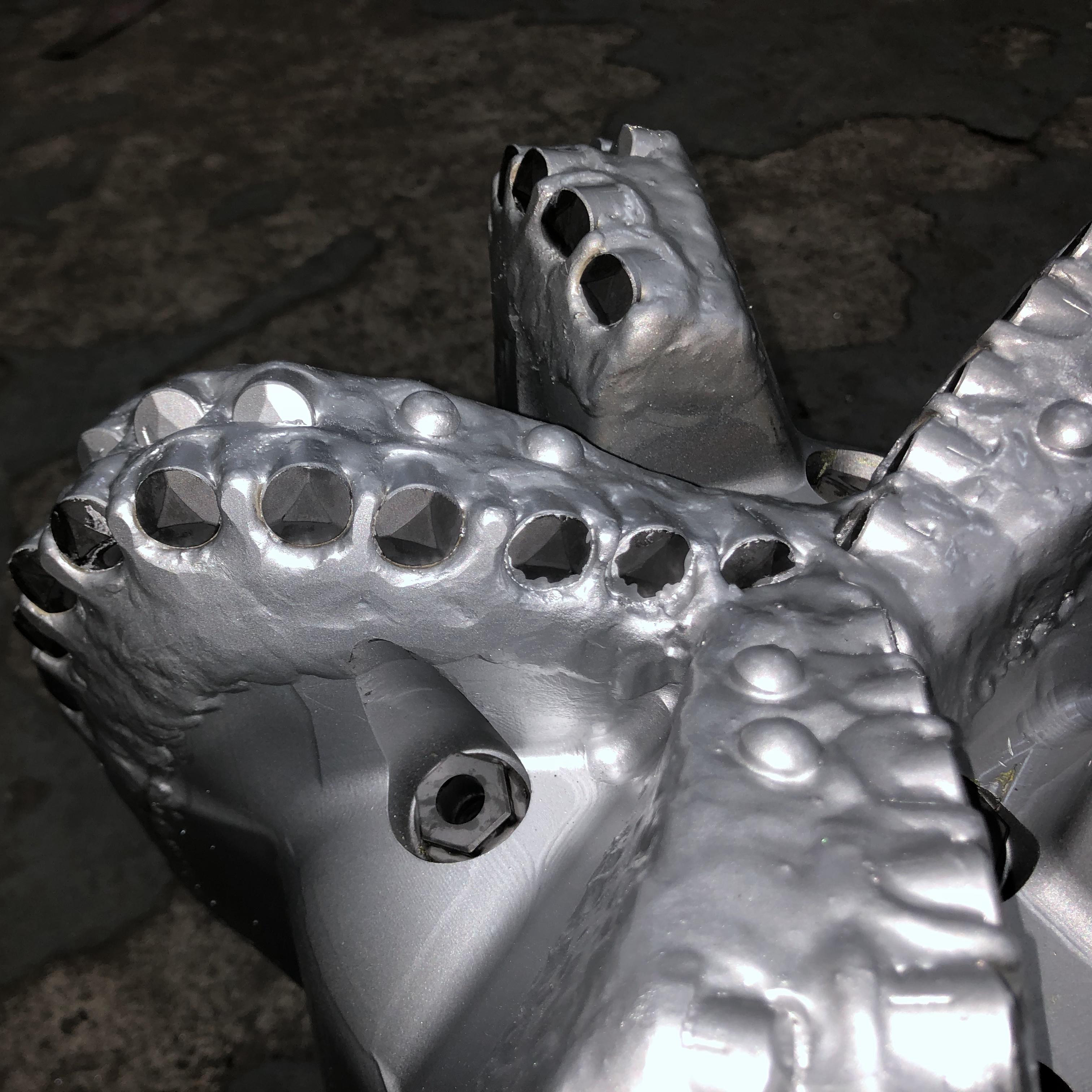 Οι ακροφύλλοι του τρυπάνιου βοηθούν στην απομάκρυνση της περιοχής κοπής και την ψύξη των κοπτήρων πολυκρυσταλλικού διαμαντινού συνθετικού (PDC).